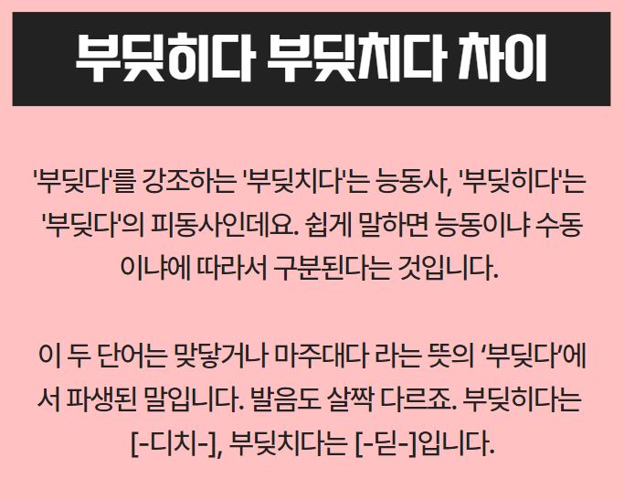부딪히다 vs 부딪치다 부딪히다 부딪치다 뜻 차이